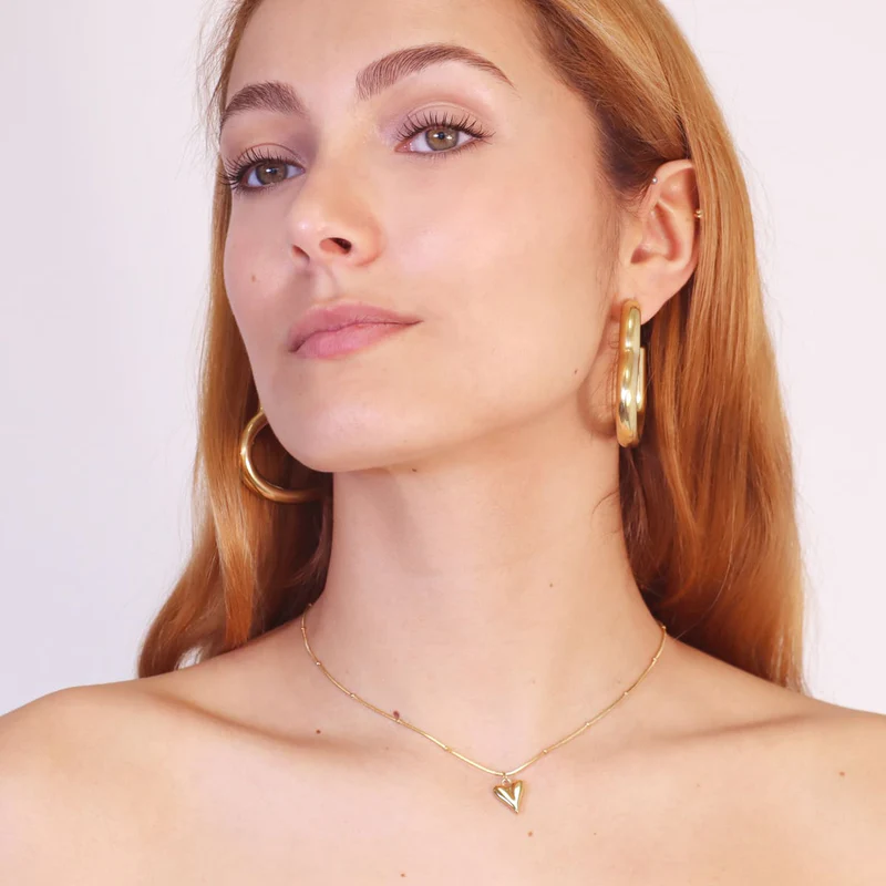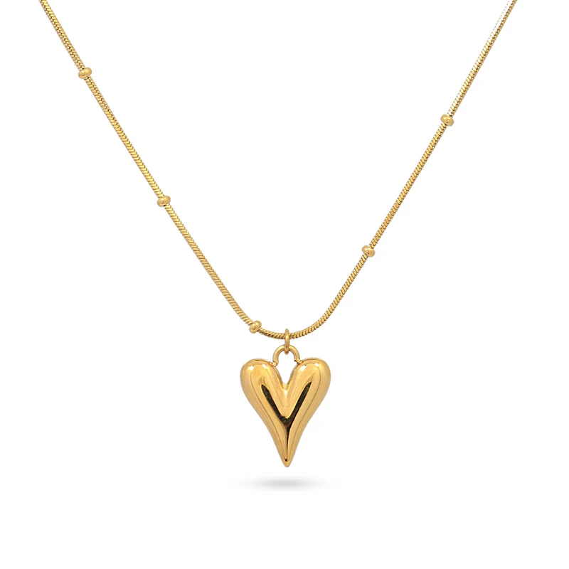Este colar coração apresenta uma corrente fina com aplicações discretas e um pendente em forma de coração, perfeito para expressar sentimentos com estilo.