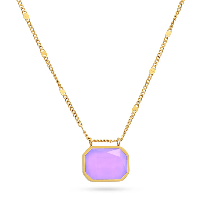 Com inspiração digital, o colar cristal destaca-se pela corrente com pequenos detalhes metálicos e encaixa-se facilmente em looks casuais ou sofisticados.